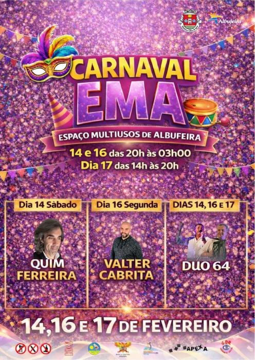 A tradição carnavalesca volta a ser vivida com grande entusiasmo, entre brincadeiras e trapalhadas, no Espaço Multiusos de Albufeira. Organizados pela Junta de Freguesia de Albufeira e Olhos de Água, com o apoio da Câmara Municipal de Albufeira e em parceria com várias entidades locais, estes “Bailes de Carnaval” prometem muita animação musical, dança, cor e alegria, num espaço único que reúne participantes de todas as idades.